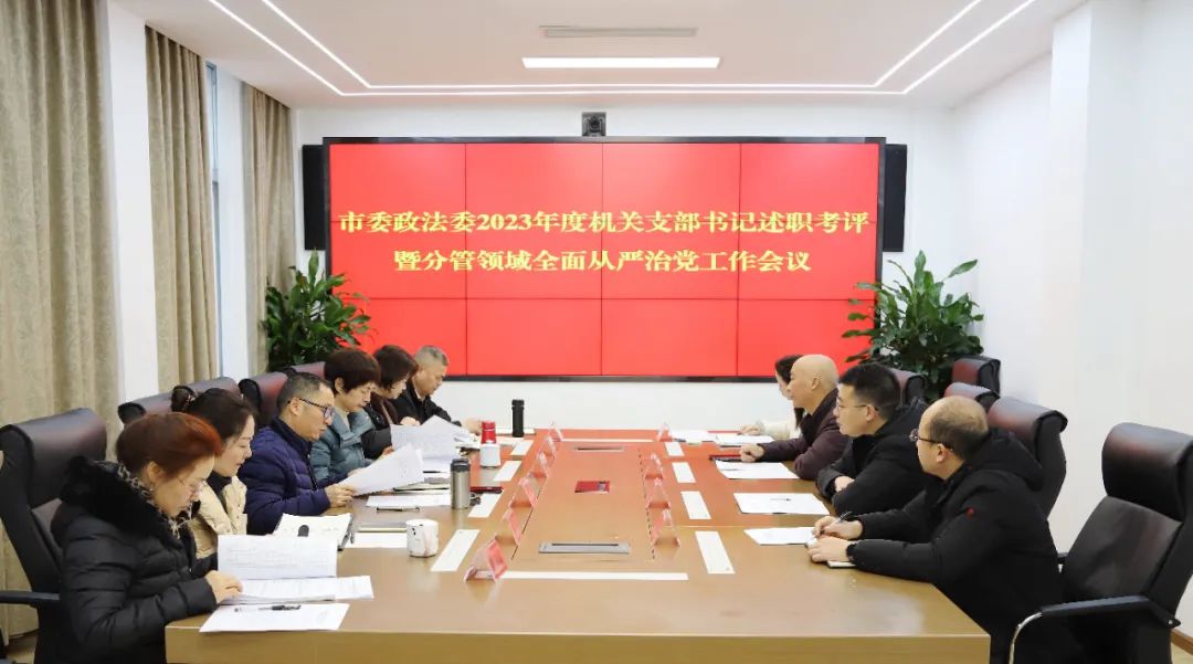 1月17日,市委政法委召开2023年度机关支部书记述职考评暨分管领域全面从严治党工作会议。会上,各支部书记分别述职,评委逐一点评并结合平时工作情况进行评分。