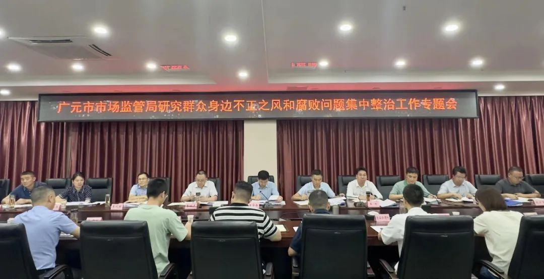 近日,广元市市场监督管理局召开研究群众身边不正之风和腐败问题集中整治工作专题会,会议听取了全市市场监管领域群众身边不正之风和腐败问题集中整治、殡葬行业专项整治、校园餐专项整治等工作推进情况汇报,对下一步工作进行研究部署。广元市市场监督管理局党组书记、局长王华南主持会议并讲话,市纪委监委驻人大机关纪检监察组负责人出席会议并作指导讲话。